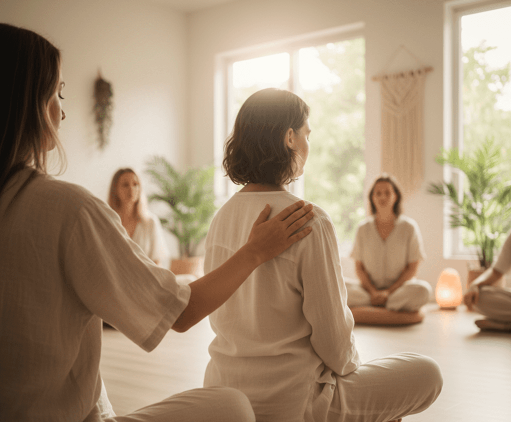 Through gentle somatic practices, nervous system care and the warmth of genuine community we create space for you to return to yourself and find a peace you can carry forward.